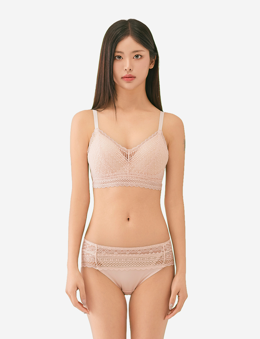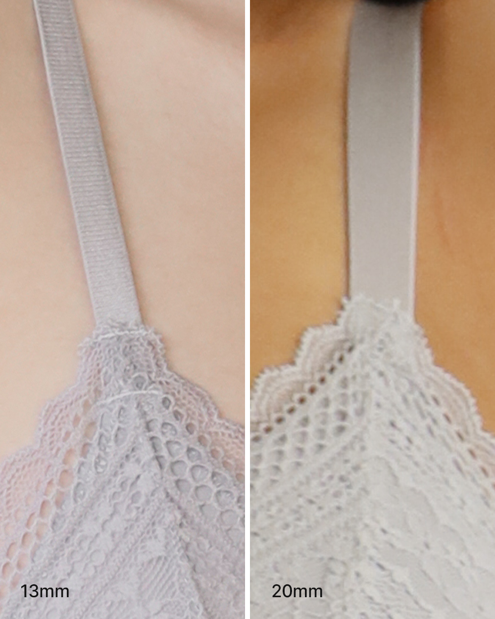 | 소재 레이스: 나일론90%,폴리우레탄10%, 컵 안감: 면100% & 면95%, 폴리우레탄 5% 몰드두께 전사이즈 5mm 85사이즈만 1.3cm(볼륨브라컵) 패드 추가 가능 후크: 85,90,95사이즈 2단후크 [기존 3단후크 재고 소진 후] 그 외 사이즈 3단후크 |