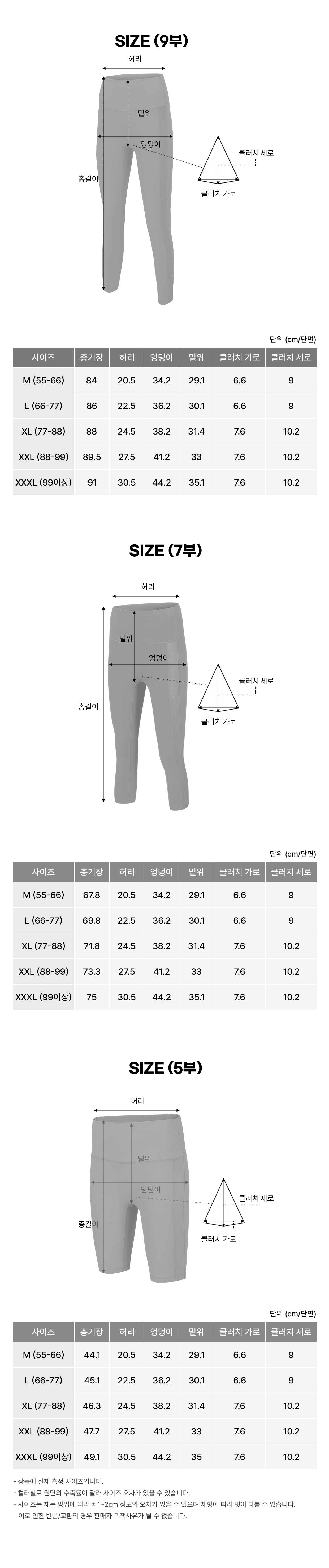 3가지 기장, 5가지 사이즈로 구성되어 있어 내 체형에 맞게 편하게 선택할 수 있습니다.