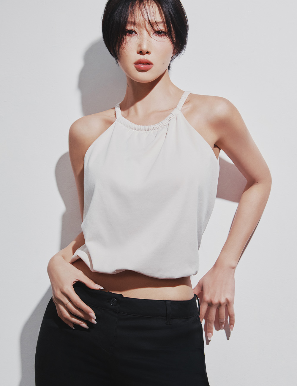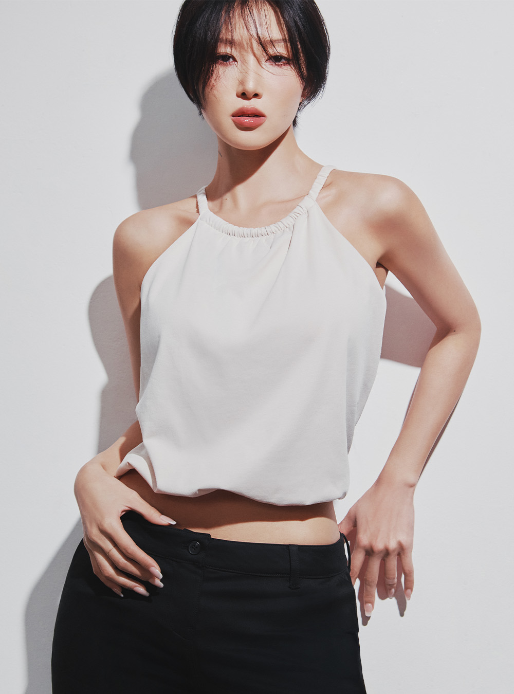 | 겉감원단 : 면 54%, 폴리에스터 40%, 폴리우레탄 6% 안감원단 : 나일론 67%(폴리아미드), 폴리우레탄 33% 몰드 : 패드추가불가능 |