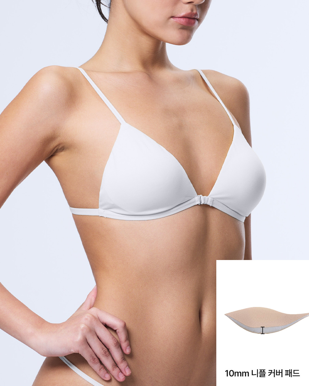 | 겉감원단 : 나일론 67%(폴리아미드), 폴리우레탄 33% 안감원단 : 나일론 68%(폴리아미드), 폴리우레탄 32% 몰드두께 : BP부분 10mm, 외곽 2mm 패드 추가 가능 / 고정형 몰드 어깨끈 넓이 : 전사이즈_3mm 후크없음 / 앞중심Z고리 |