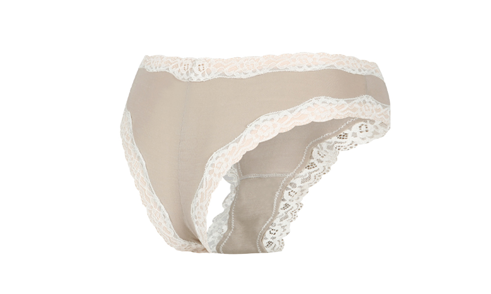 허리와 다리 라인을 따라 더해진 레이스 디테일이 페미닌한 무드를 연출합니다.