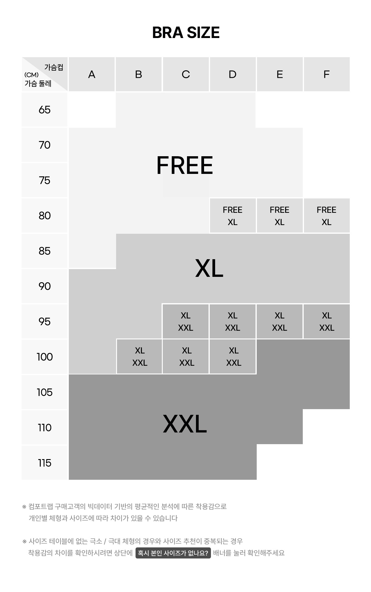 컴포트랩 빅데이터 분석 기반의 평균 추천 사이즈입니다.