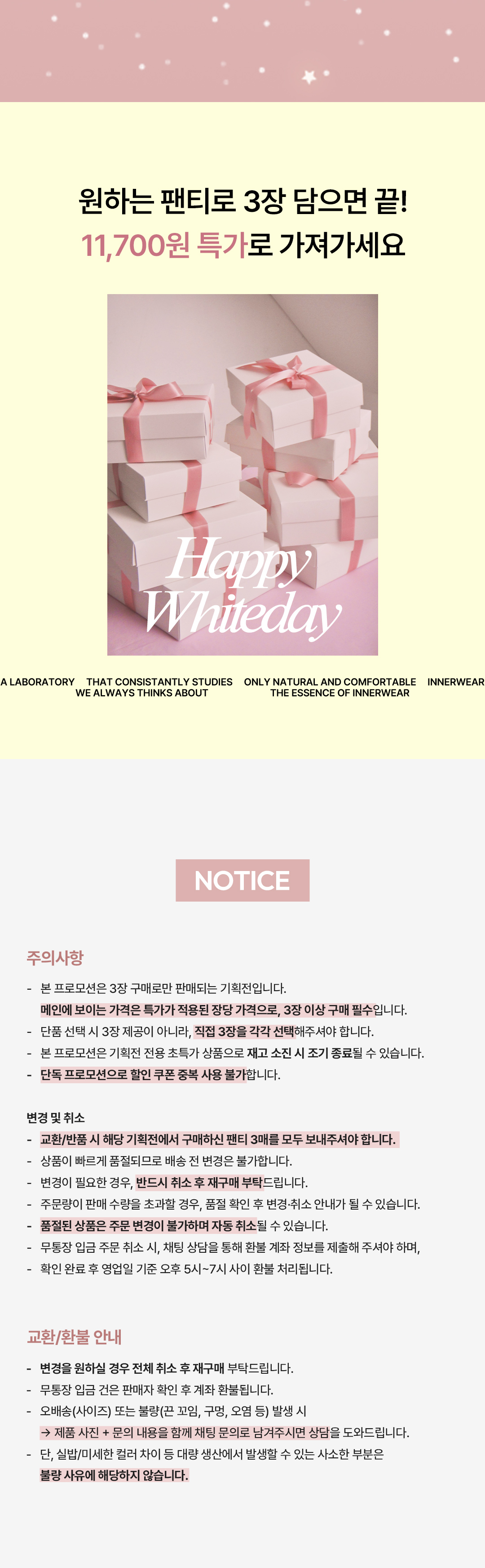 [화이트데이 한정] 팬티 3장 기획전